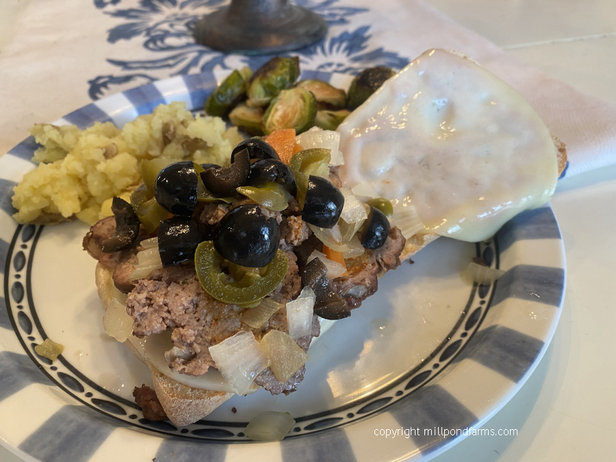 My husband made a meatball sandwich with provolone cheese.