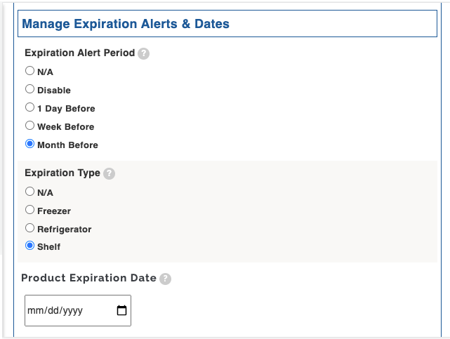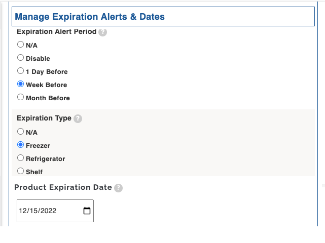 Product Expiration Date: Enter the expiration date you estimate this will last in your freezer.