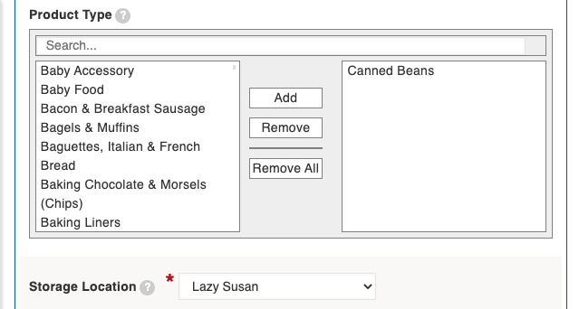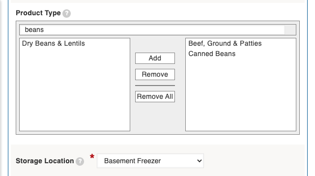 You can enter multiple types. Use the Search to add Canned Beans and click the Add button