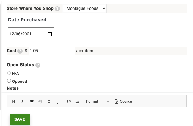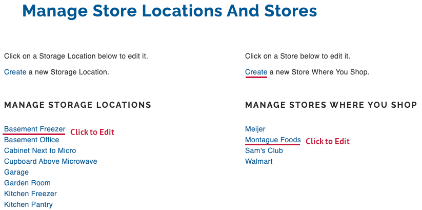 Before you can add items into the system you must create custom Storage Locations and custom Stores Where You Shop.
