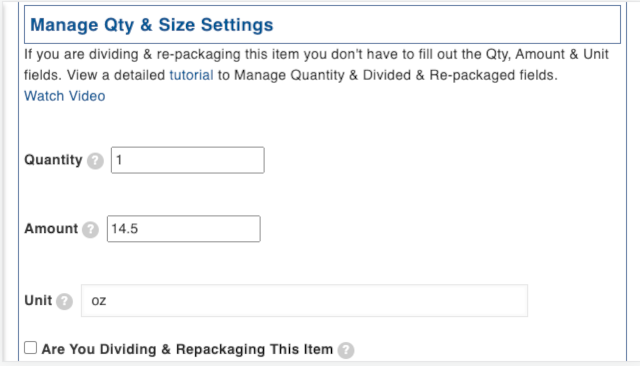 Click the box next to: Are you Dividing or Repackaging this Item?